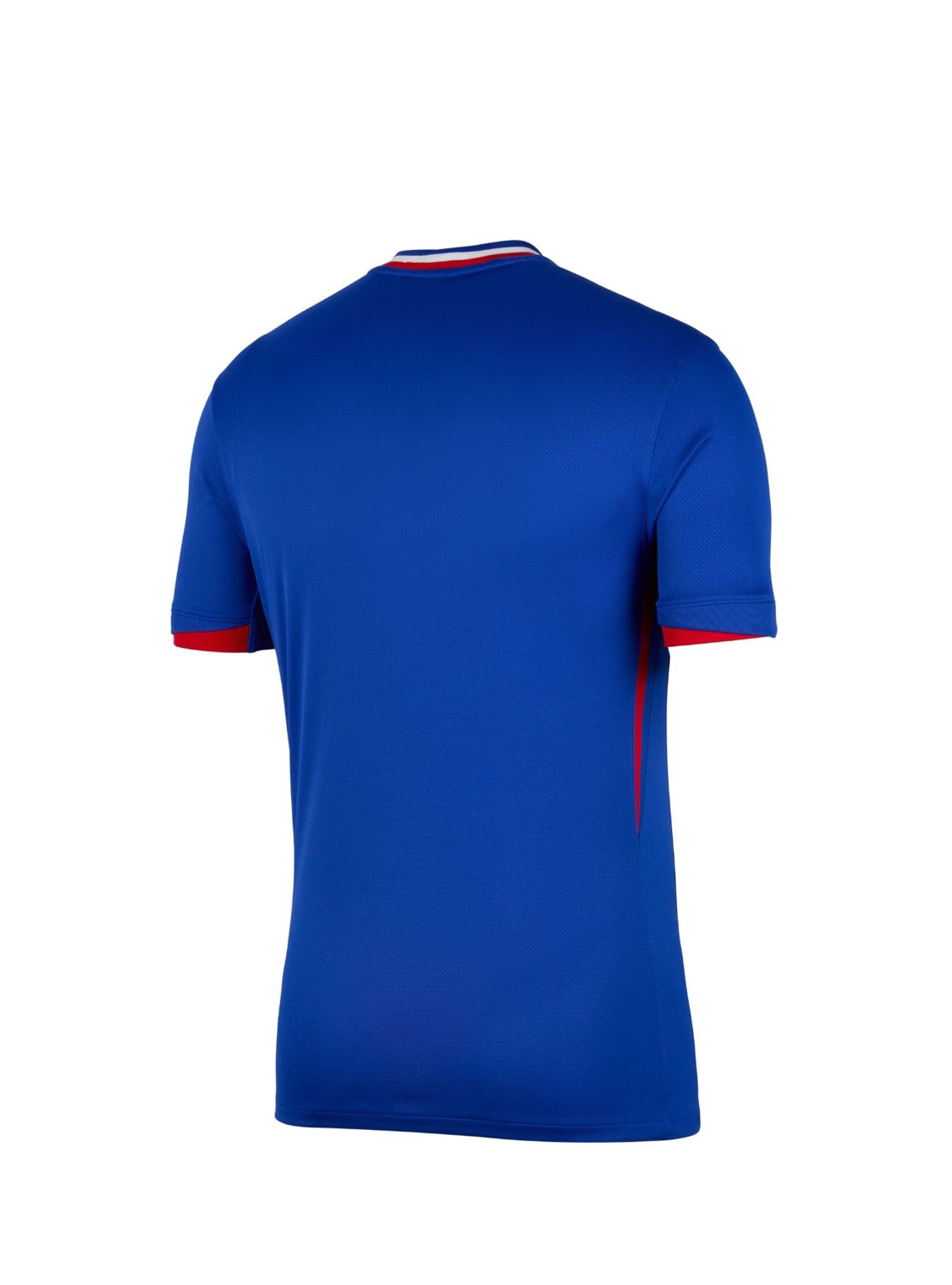 Inspirée des maillots de la France dans les années 1960, la tenue Domicile FFF 2024 célèbre aussi la richesse et la diversité culturelles du pays. Le grand coq sur la poitrine et les côtes tricolores rappelant le drapeau français ne laissent aucun doute sur le pays que ce maillot représente.