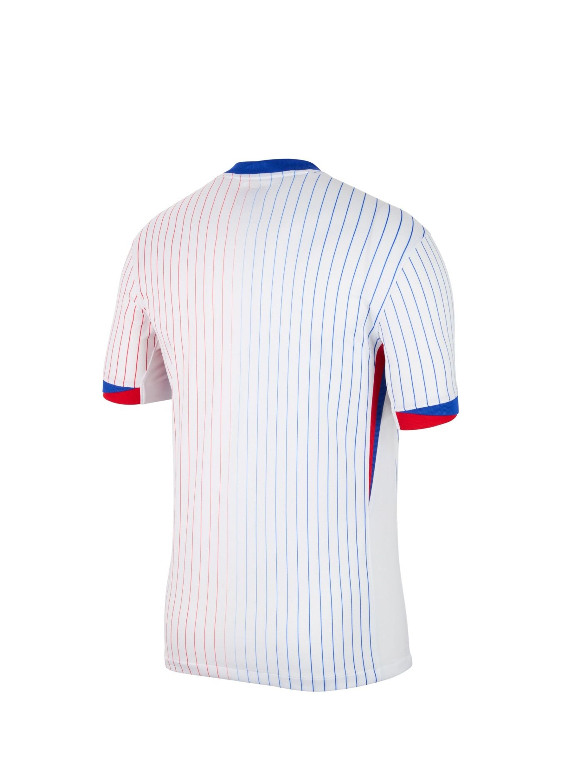 Inspirée des maillots de la France dans les années 1960, la tenue Domicile FFF 2024 célèbre aussi la richesse et la diversité culturelles du pays. Le grand coq sur la poitrine et les côtes tricolores rappelant le drapeau français ne laissent aucun doute sur le pays que ce maillot représente.